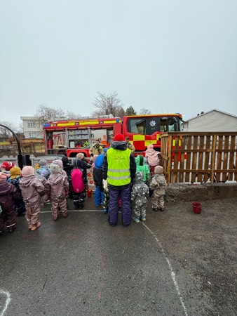 Besøk av brannbil og brannmenn, i Brannvernuka vår. π